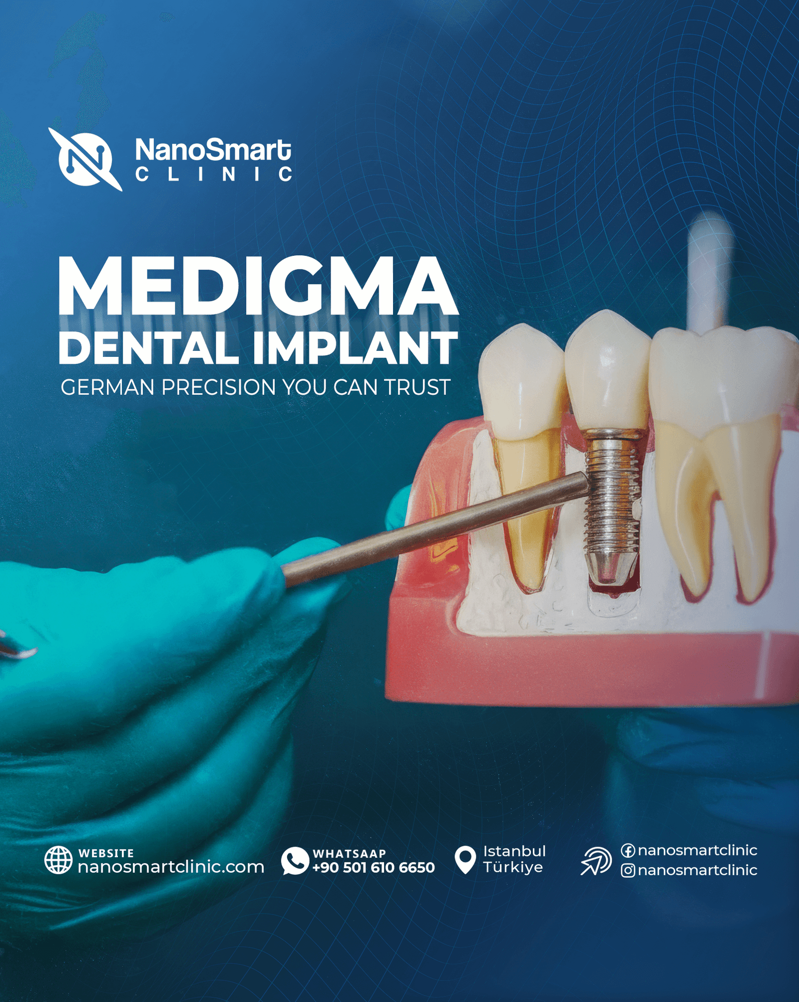 إذا كنت تفكر بزراعة الأسنان الألمانية Medigma في إسطنبول، تواصل مع Nano Smart Clinic للحصول على تقييم شامل وخطة علاج متكاملة.
